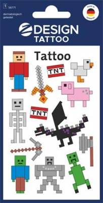 A digitális világ minden rajongójának! Tetováljatok Pixel & Co figurákat magatokra – persze nem igazából, mégis megtévesztően élethűeket. A menő digitális tetoválásokkal mindenkinek lehet kedvenc pixelje! Lepje meg gyermekeit fantasztikus tetoválásokkal, amelyek tökéletesek ajándéknak, meglepinek, születésnapi bulikra vagy egyszerűen egy közös játékhoz a gyerekeknek.