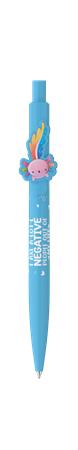 Axolot formájú klipsszel díszített golyóstoll-nyomógombos-műanyag, kék tolltest-cserélhető X-20-as betét-írásszín: kék -írásvonalvastagság: 0,8 mmGyártó/első EU forgalmazó elérhetősége: ICO ZRT2013 Pomáz, ICO út 5.; EUpost@ico.eu