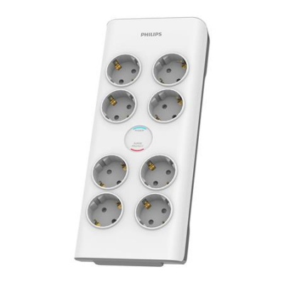 Beltéri elosztósor túlfeszültség-védelemmel.-8 aljzat-900 J túlfeszültség-védelem-2 m kábelhossz-csomózódás-mentes fonott kábel-főkapcsoló-beépített kulcslyuk nyílások a falra szereléshez-biztonsági védelem-gyermekbiztos zár-50 000 EUR